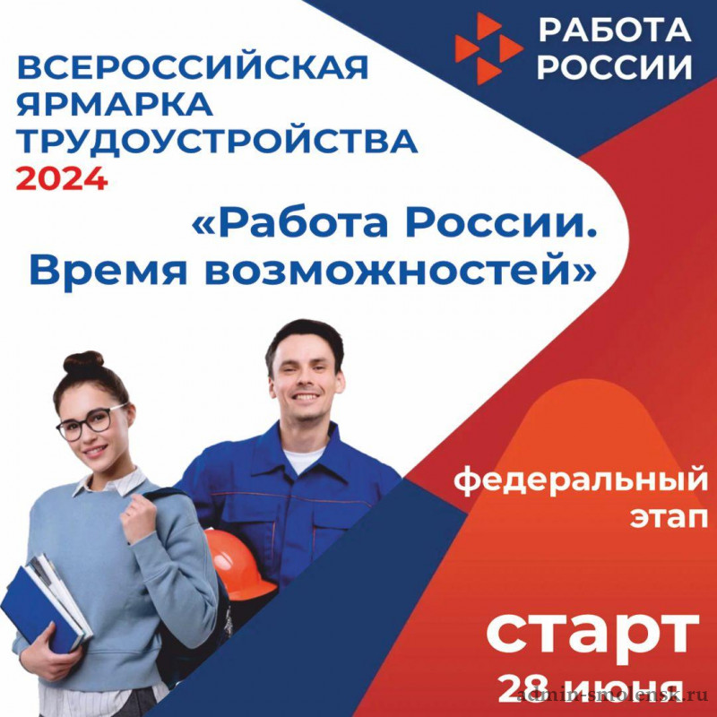 28 июня 2024 года пройдет Всероссийская ярмарка трудоустройства «Работа России. Время возможностей».